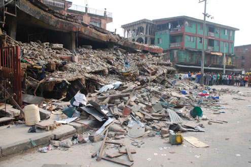 Tragedy struck at Mogaji St. in Idumota area of Lagos Island on Tuesday night when a four-storey building collapsed, killing six people.